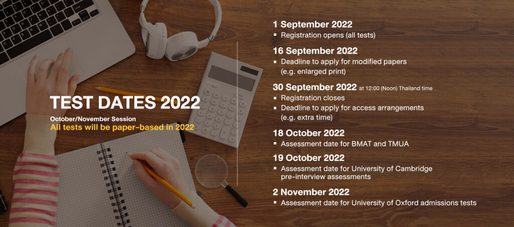 อัพเดทข่าวการสอบ BMAT 2022 เปิดรับสมัครสอบ BMAT วันที่ 1 กันยายน เวลา 00.01 น. (เที่ยงคืน) ปิดรับสมัคร วันที่ 30 กันยายน เวลา 12.00 น. (เที่ยงวัน)