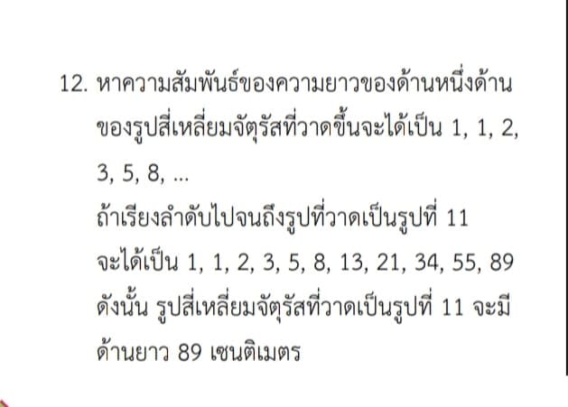 รูปที่ 11 ด้านจะยาว 89 เซน (55+34) บอกหลานว่า ความยาวของสี่เหลี่ยม จะเท่ากับ ผลบวกของความยาวสี่เหลี่ยมสองรูปที่มาก่อน